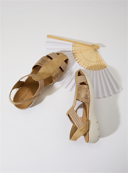 Step into sunny-day style with our Stylish Strappy Sandal. Lightweight, comfortable, and effortlessly chic in faux leather with a modern strappy design. Synthertic/Faux Leather.
