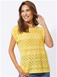 Easy-care ajour sweater in an airy all-over knit pattern. With a round neckline and fashionable dropped shoulders. Ribbed cuffs on the short sleeves and hem. 100% Acrylic.