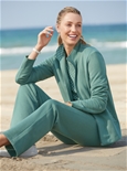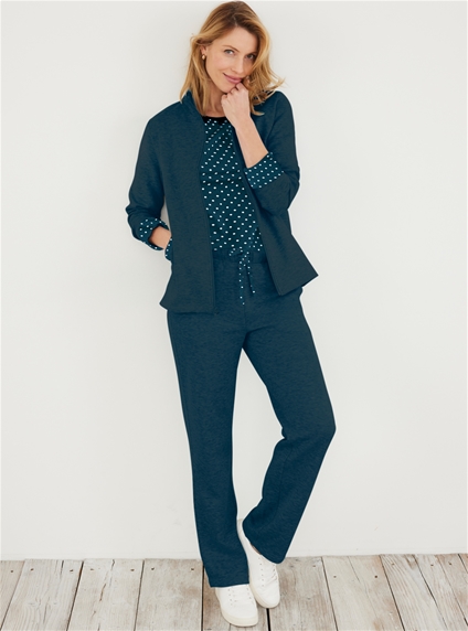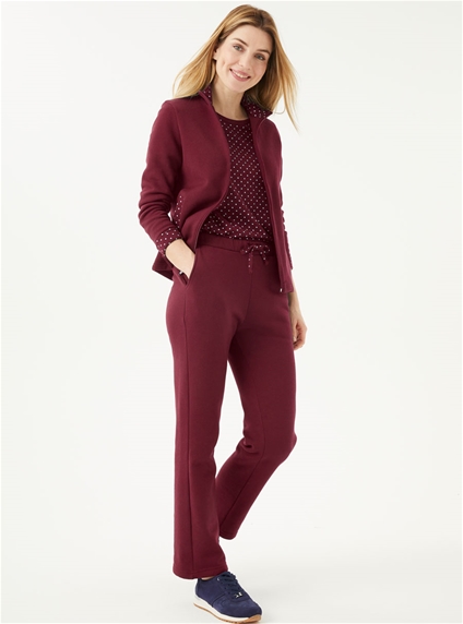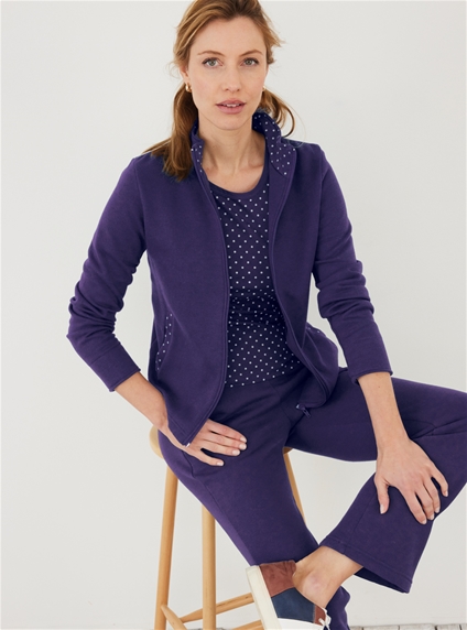 You will love this amazing 3 piece tracksuit! Featuring a jacket with zip front and front pockets with contrast polka dot trim inside the collar. Full length pants with tie front and elastic waist for a comfortable fit and 2 side pockets. Crew neck printed tee featuring a lovely polka dot design. 65% Polyester, 35% Cotton.