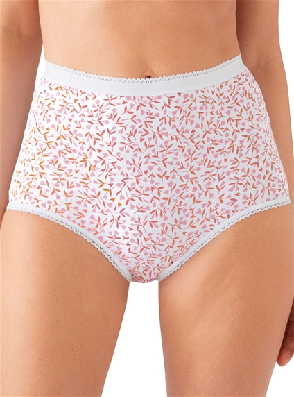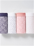 Pack of 4 matching panties in, soft stretchy cotton with elasticated waistband and lined bottom for comfort and support. Cotton, Elastane