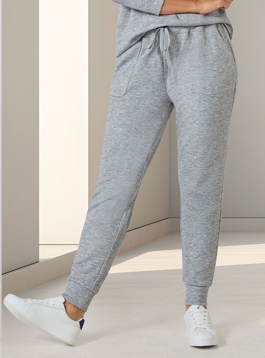 Drawstring elastic waist, easy pullon design, patch pockets cuffed hem for a relaxed fit with effortless, elevated everyday lounging.