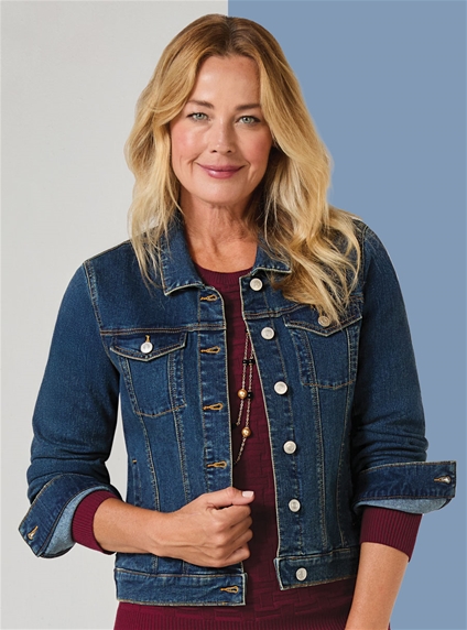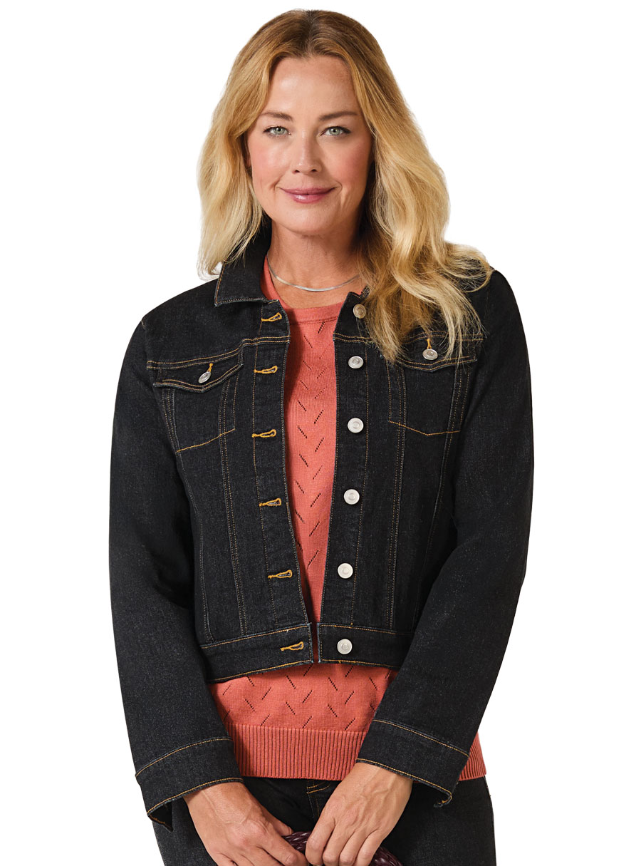 Classic denim jacket with rolled sleeves, contrast stitching and timeless button‑front detailing for effortless layering. 71% Cotton, 27% Polyester, 2% Elastane.