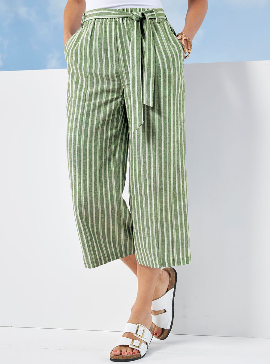 These classic capris will be your favourite wear everywhere style. Made from linen and viscose, they’re cool, comfortable and feature stylish detail with a stretch tie waist, back welt pockets... and with a wide leg they bring a flattering fit and flared silhouette too. A great addition to all wardrobes, they pair perfectly with absolutely any tee.