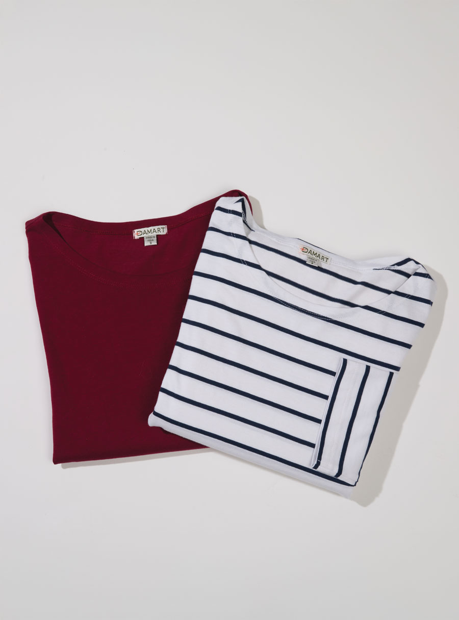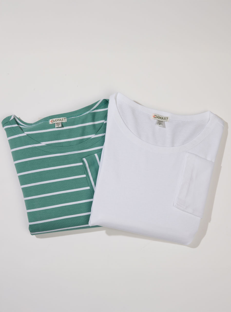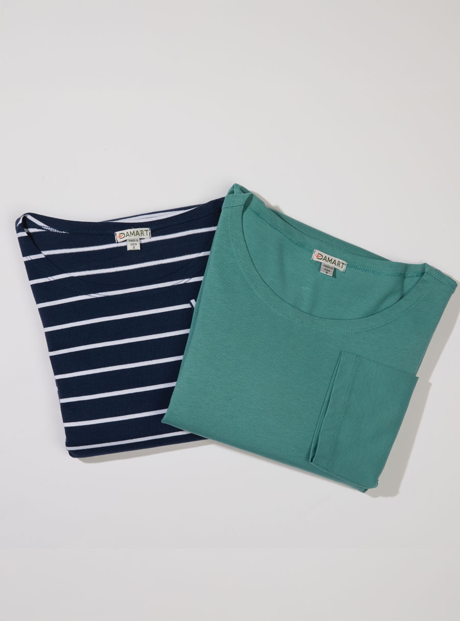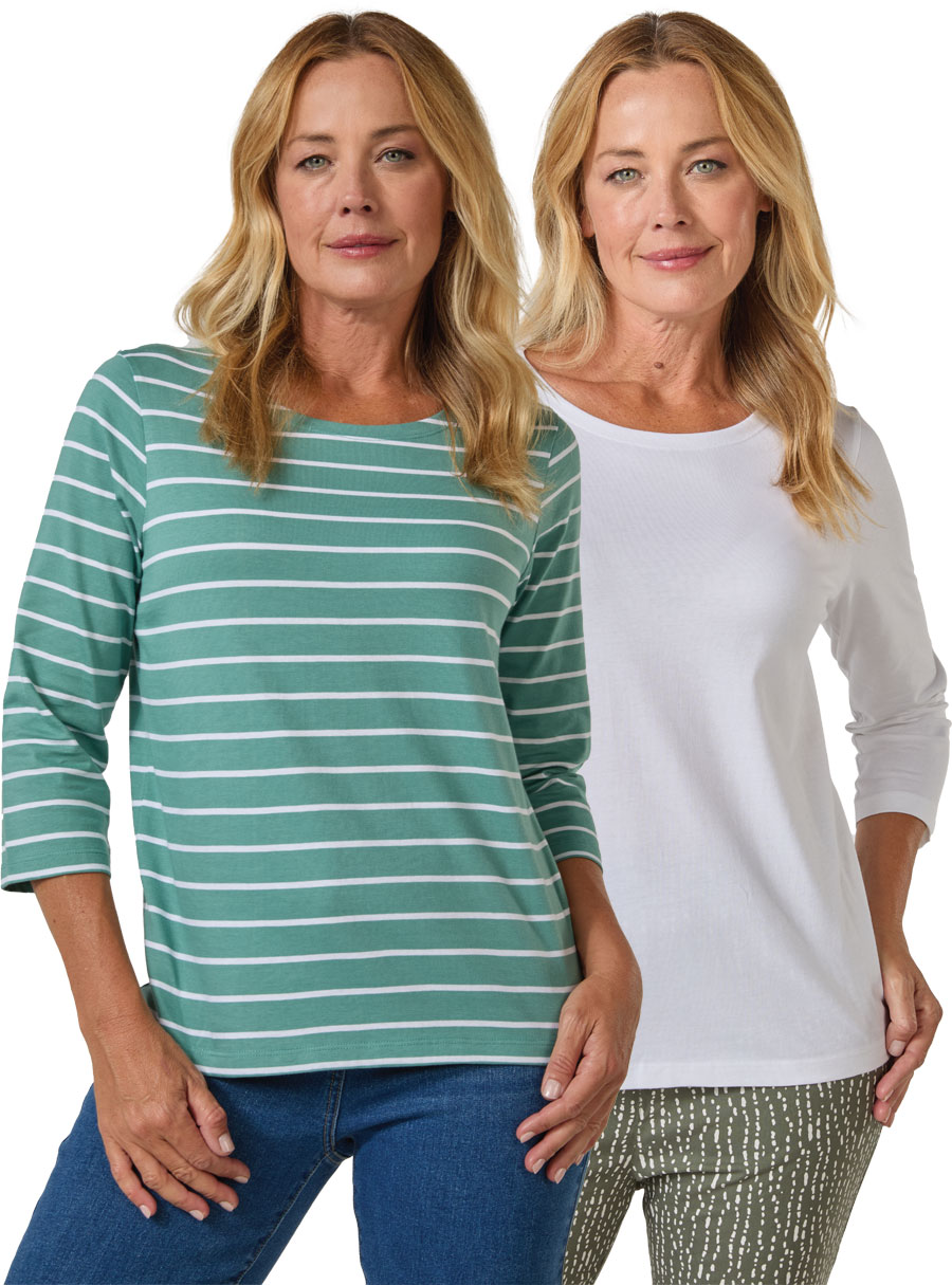 Enjoy our new cotton multi-pack ¾ sleeve tees, combining stripes and solids – perfect for mixing and matching in everyday wear. 100% Cotton.