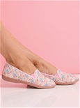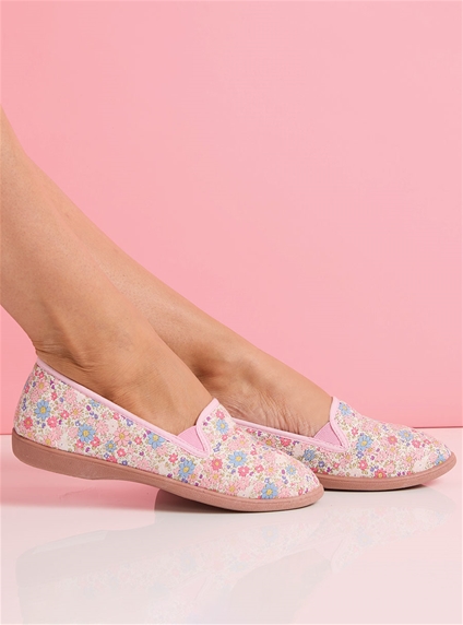 Adorned in a delicate all over floral print. These slippers are so easy to slip on and comfortable to wear around the house.