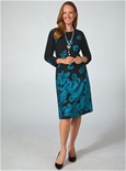 Your new wardrobe favourite! This dress is made to move with you, in a warming fabrication with stretch. Featuring a striking floral design woven in it makes the perfect winter dress. 7/8 Sleeves, zippered back and shaping panels.