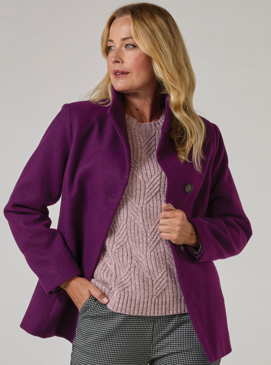 Cosy Thermolactyl jacket in a brushed fabrication with side pockets, fully lined to keep the cold out, triple button at top edge of jacket. 90% Polyester, 8% Viscose, 2% Elastane.