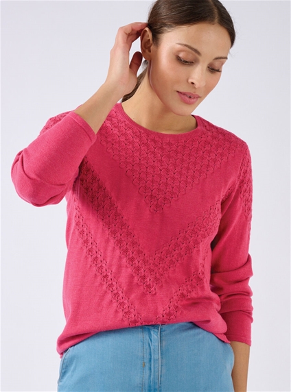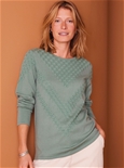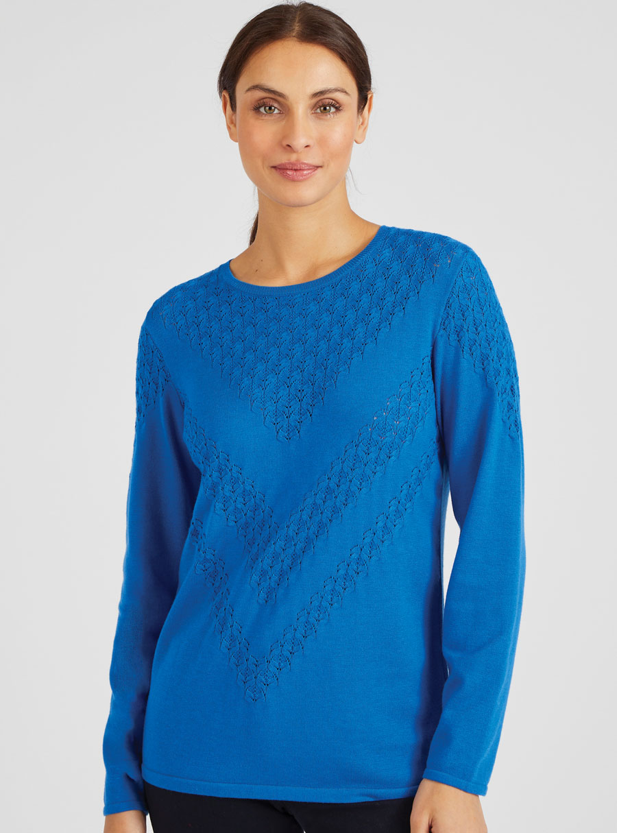 Soft, lightweight knit with Thermolactyl® warmth, perfect for chilly days, featuring a feminine chevron pattern. 48% Polyamide, 35% Polyester, 11% Acrylic, 6% Wool.