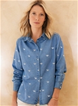 An effortlessly chic essential – it’s both lightweight and comfortable. Features floral embroidery, button-down front and long sleeves with buttoned cuffs. 62% Cotton, 38% Lyocell.