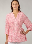 Soft, breathable and effortlessly stylish. This 100% viscose shirt features vibrant colours, pintuck detailing and a relaxed fit with a split neckline and three-quarter sleeves. A perfect pop of colour for any day. 100% Viscose.