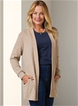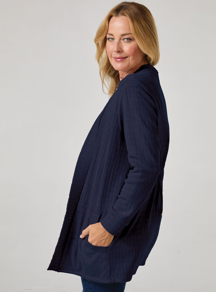 Cosy cover up in a fluffy knit, front patch pocket and gentle back gathering for a flattering layered look.