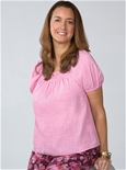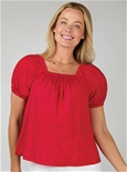 Soft and breathable in 100% cotton, this embroidered top features a smocked neckline and gently puffed sleeves for an easy, feminine silhouette. Perfect for pairing with skirts or pants for versatile everyday style. 100% Cotton.
